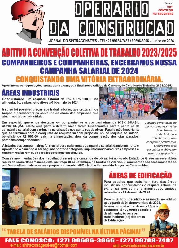 24/06/2024 - Jornal Operário - Mês de Junho de 2024 - Construção Civil - Campanha Salarial 2023/2025